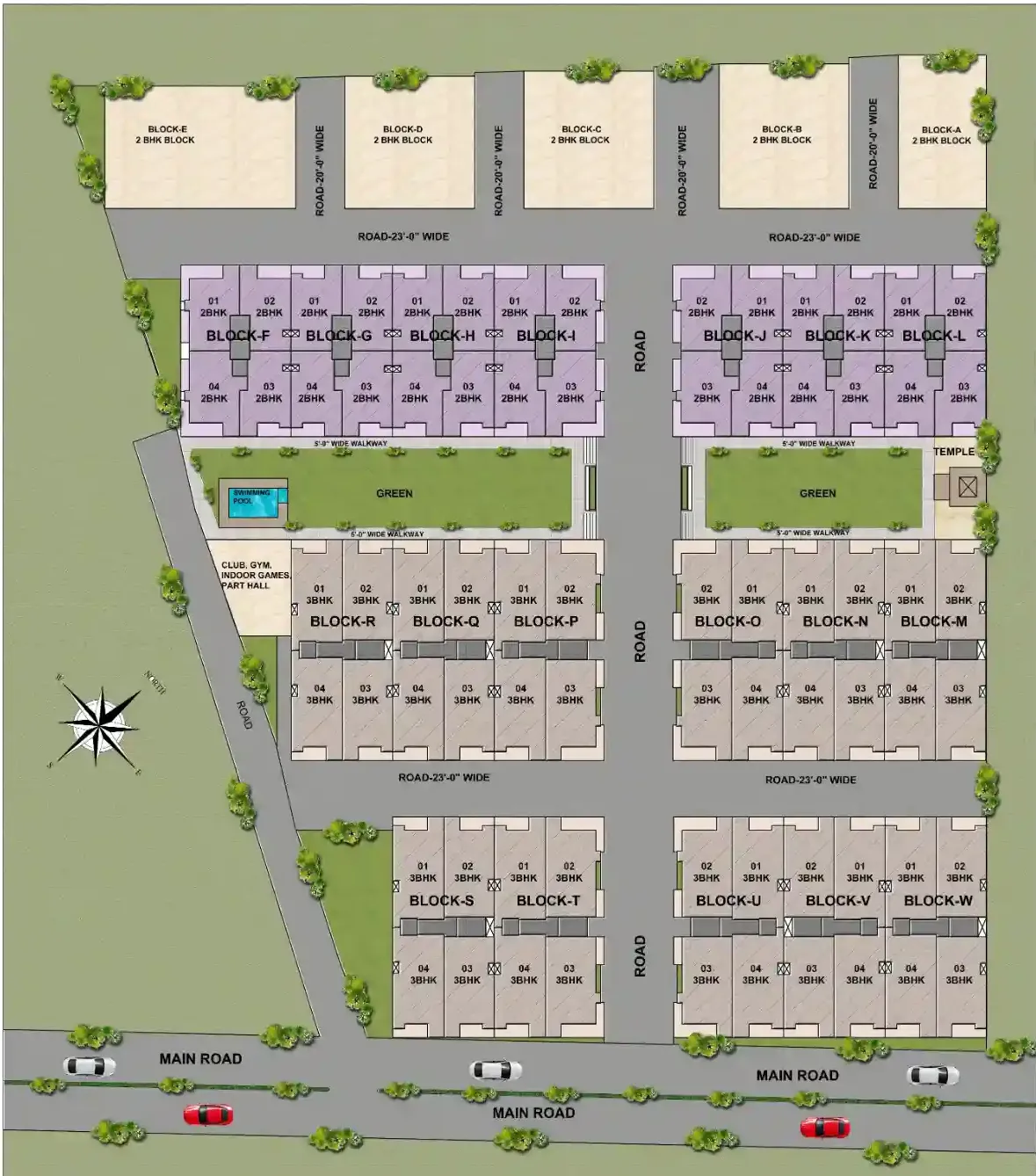 The site layout of Vihaan Green Heaven is a well-thought-out plan to provide a perfectly balanced and neatly organized community layout. The project spread across ‘ecologically sound surroundings in Sector 20, Noida Extension, ensures maximum open space, efficient circulation, and a harmonious blend of the built and the natural environment. The plan includes placement of residential towers in a manner that each home gets ample sunlight, fresh air, and beautiful views. Wide internal roads, pedestrian-friendly pathways, and green belts have been developed to facilitate mobility and increase the user's level of comfort.